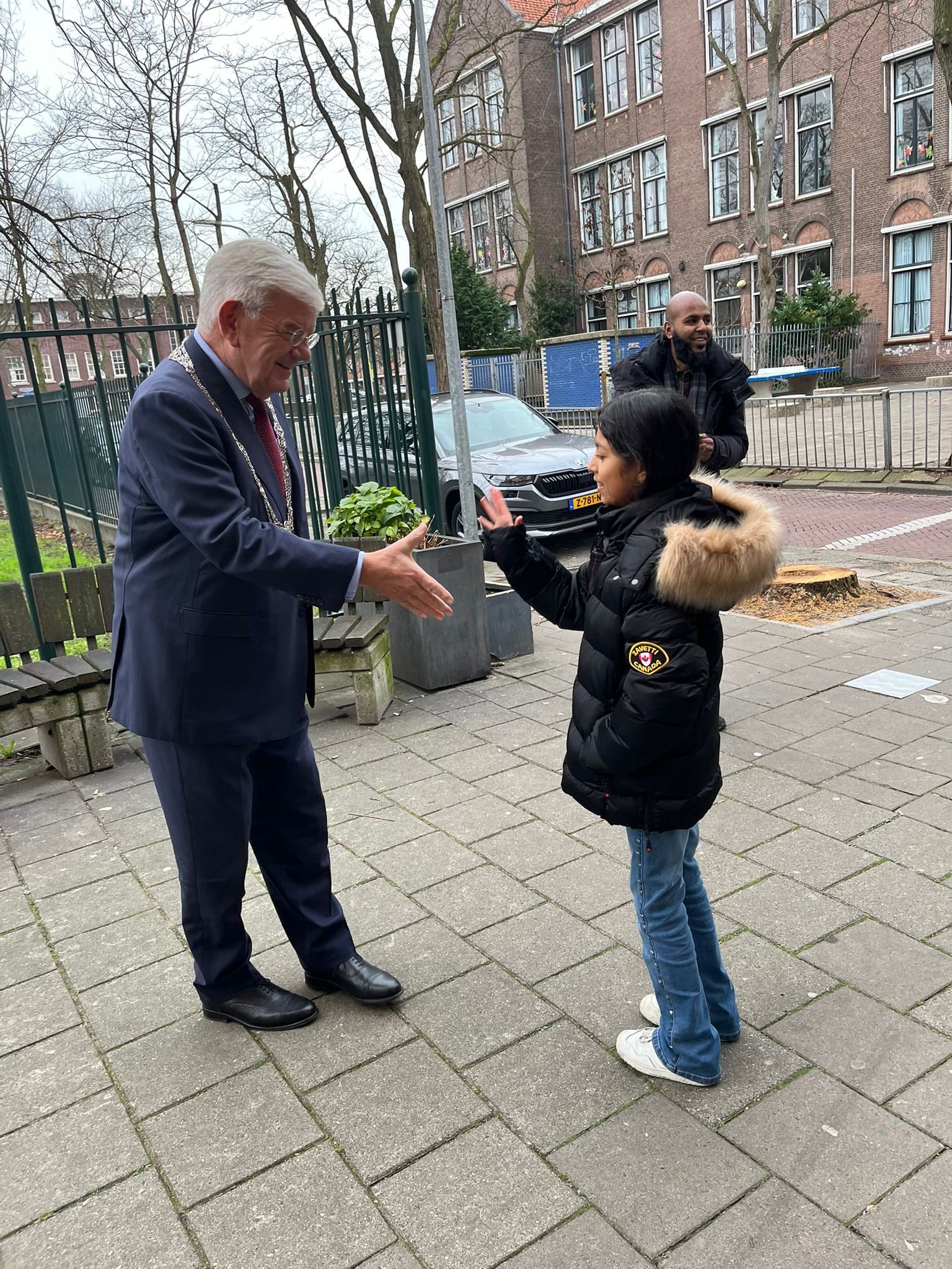 Bezoek tegen drie uur het woonzorgcentrum Haaglanden in Transvaal. Doe dat samen met Nimet (kabinetszaken). Begroet bij aankomst een jeugdige wijkbewoonster die spontaan op me afkomt.
