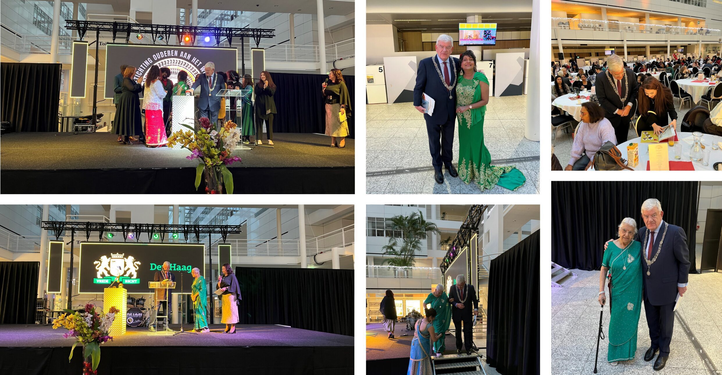 Het Atrium in het Stadhuis is mijn laatste bestemming vandaag. Kreeg een uitnodiging van Rosemary Samadhan, voorzitter van de stichting Ouderen aan het Woord. Vandaag staat de stichting stil bij het 25-jarig bestaan. Het is een vrijwilligersorganisatie die actief is met het verbinden van generaties en culturen. In een ongedwongen sfeer brengt de stichting ouderen en jongeren uit diverse windstreken bij elkaar. Bij het eerste lustrum in 2005 is het boek ‘Haagse Generatie een Waaier van Culturen’ uitgegeven. Hiervoor zijn destijds drie generaties Haagse inwoners geïnterviewd en geportretteerd. Nu, 20 jaar later, komt in een podcastserie getiteld ‘Jongeren aan het Woord’ de derde generatie uit het boek aan het woord. En vandaag organiseert de stichting een minisymposium. Het thema is intergenerationele mentale gezondheid. Ali Lahdidioui (internist van het HagaZiekenhuis) en psycholoog Mark Smit verzorgen een inleiding. Draag bij aan de opening door het samen met de jongeren, met het drukken op een rode knop, lanceren van de podcast. En door in een korte toespraak mijn gelukwensen uit te spreken aan de stichting en iets te zeggen over het thema van het minisymposium. Krijg bij het afscheid uit handen van de (seniore) penningmeester Helouise Arjun Sharma het boek ‘Als een vlieg in een spinnenweb’ aangeboden. Het is geschreven door Mark Smit, een van de inleiders van zometeen. Eervol.