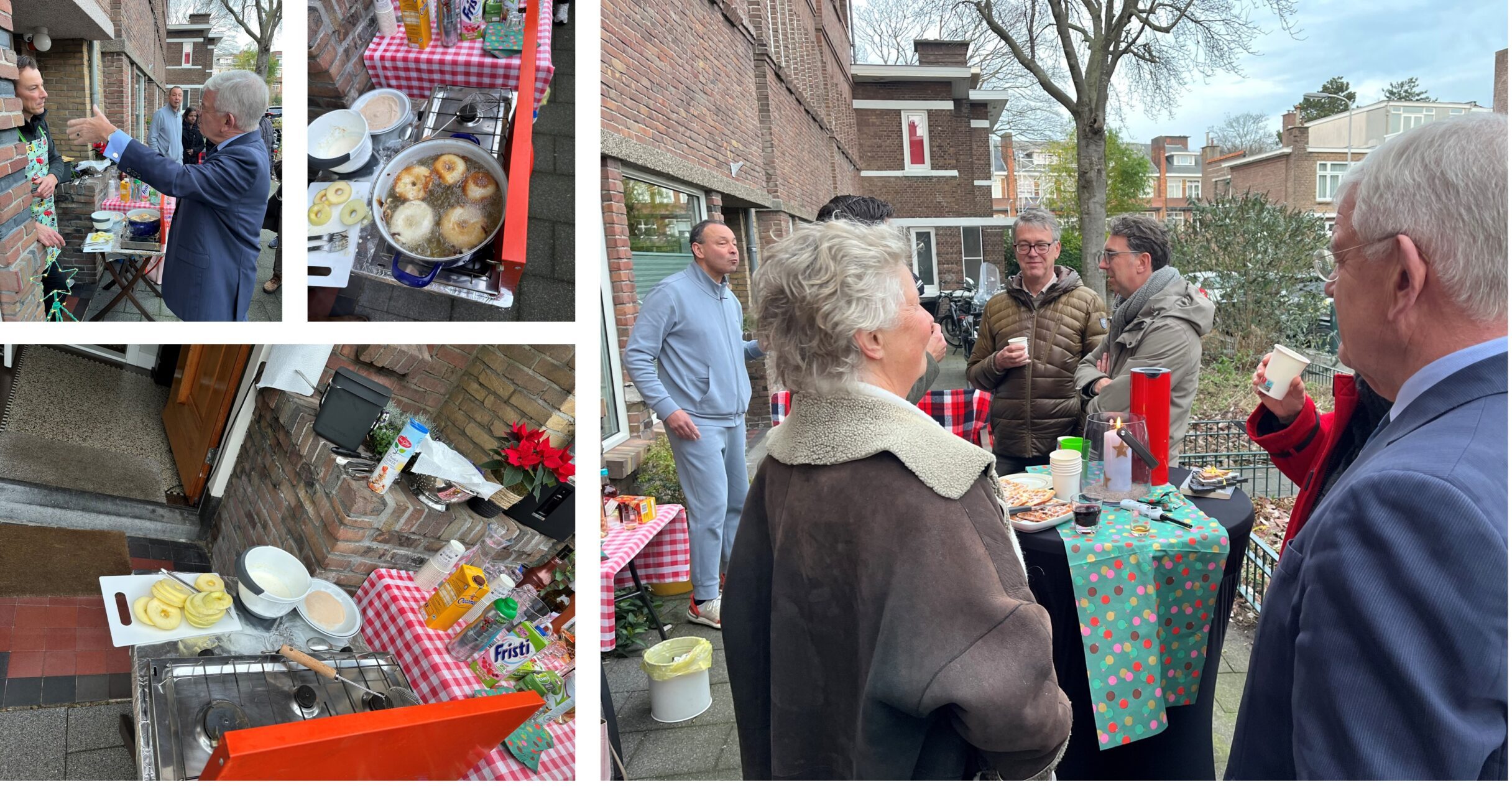 Iets vroeger dan afgelopen jaren bakken oud-wethouder, nu Tweede Kamerlid Robert van Asten en zijn echtgenoot Michiel (“Ik doe dit al sinds mijn elfde”) oliebollen voor hun huis. Ga er ’s middags even op bezoek. Het is gezellig in de Bomen- en Bloemenbuurt. De oliebollen waren op, maar de zelfgebakken appelflappen en wafels smaken ook prima. Goede bekende Aroena Sansaar en haar man Ferenc blijken Roberts buren. De wereld is klein.