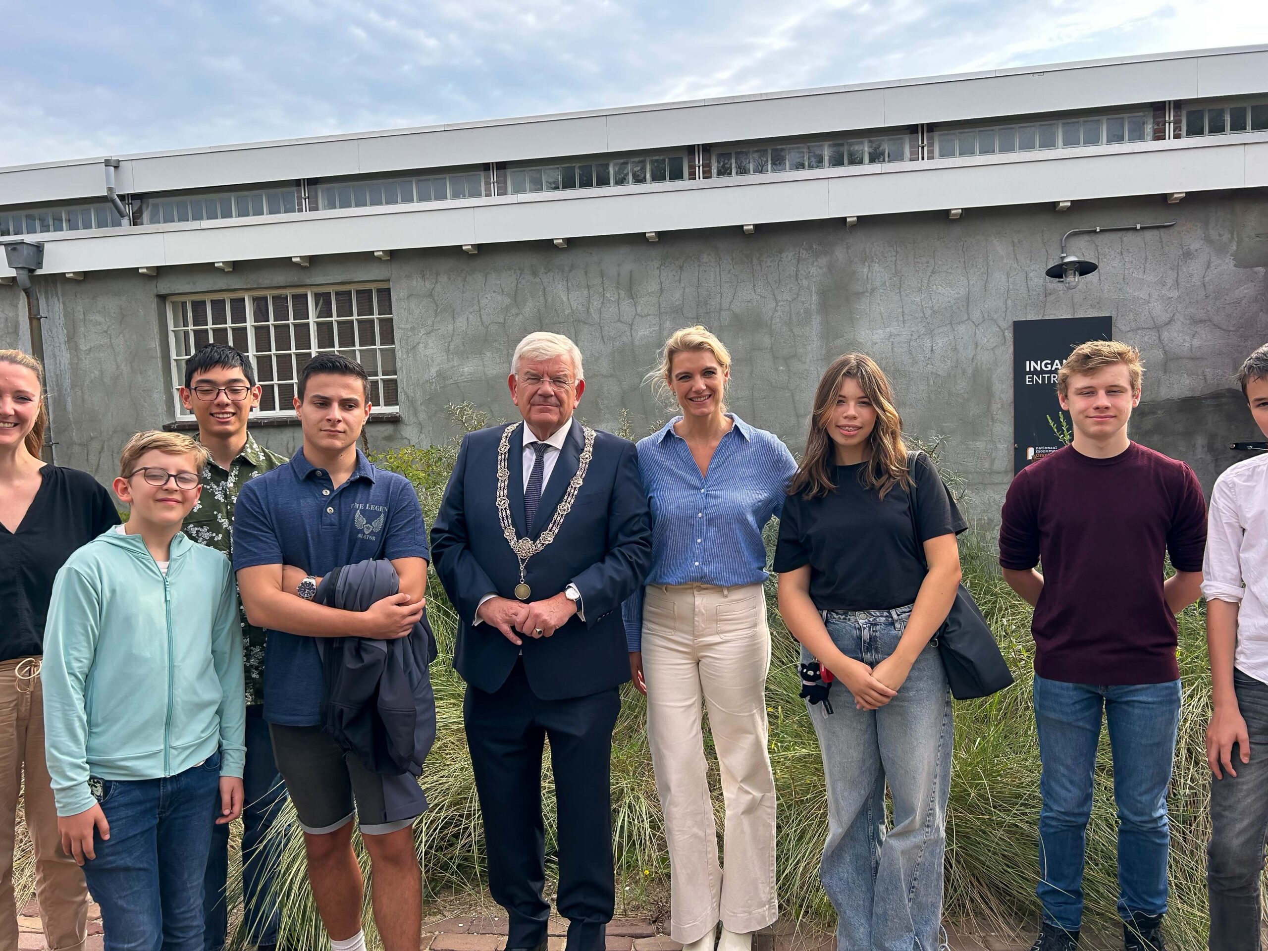 Neem afscheid. Ga tot slot op verzoek van schooldirecteur Brenda Stoffele van het Maris College (zij adopteerden het monument) met de aanwezige leerlingen op de foto. Eervol.