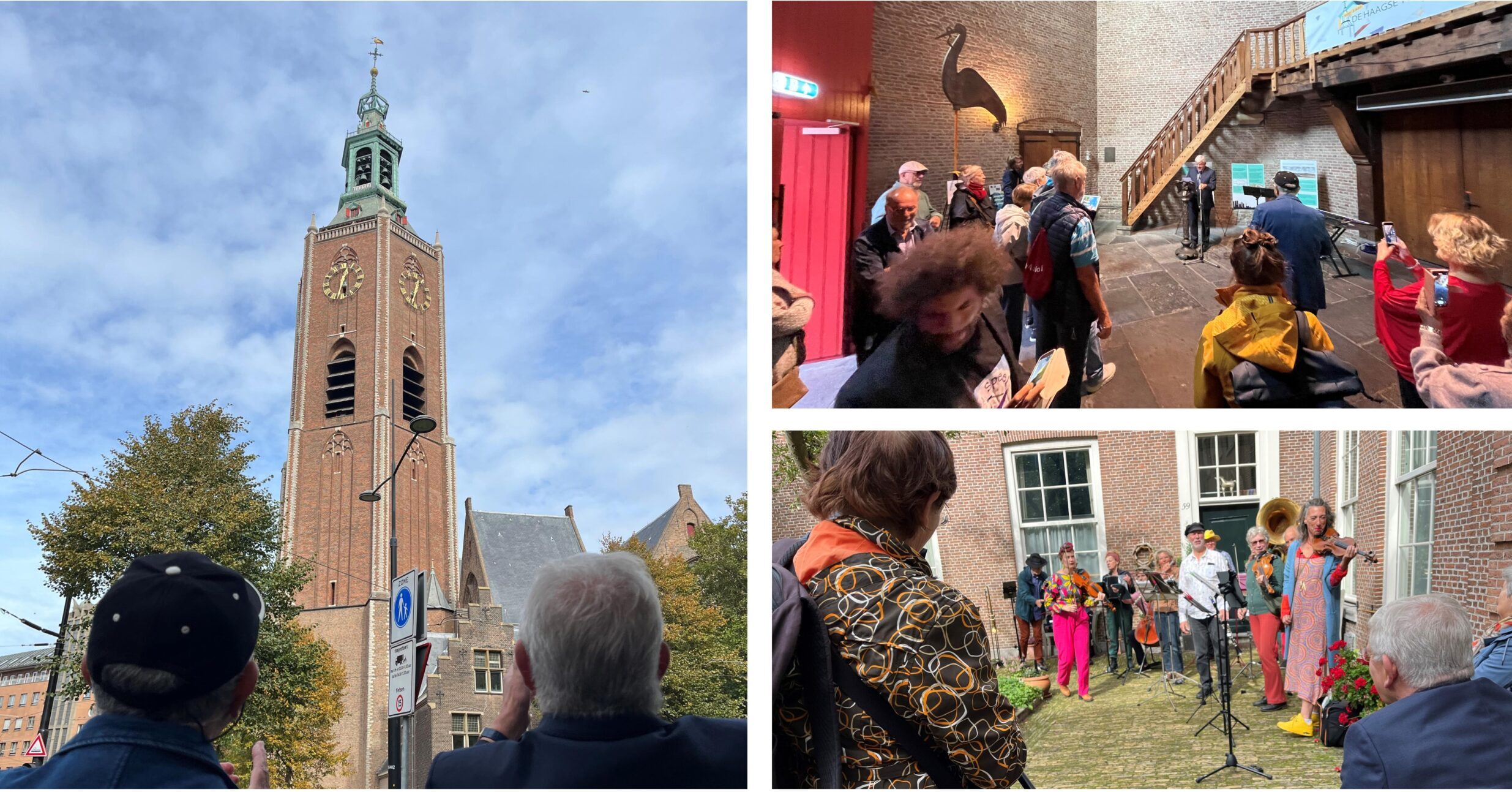 Ga rond het middaguur samen met Freek (kabinetszaken) naar de Haagse Toren bij de Grote Kerk. Jan Staallekker (voorzitter van de stichting Haagse Notûh) nodigde me uit voor een bijdrage aan de opening van het Haagse muziek- en poëziefestival ‘SSSttt… Geheim!’. Op verschillende locaties in Haagse hofjes brengen deelnemers de hoogtepunten uit de Haagse amateurmuziek en poëzie van Haagse dichters ten gehore. Jan doet me in- en uitgeleide. Spreek in de ontvangstruimte van de Haagse Toren de aanwezigen toe. Lopen dan snel naar buiten om te luisteren naar het ‘O, O, Den Haag’ dat stadsbeiaardier Gijsbert Kok vanaf de toren laat horen. Ook een orkest met 22 blazers laat vanaf de toren muziek horen. Wandel naar ‘t Hoofts Hofje. Daar brengt het ‘newklezcollectif’ een aantal Klezmer nummers ten gehore. Kleurrijk en muzikaal geheel.