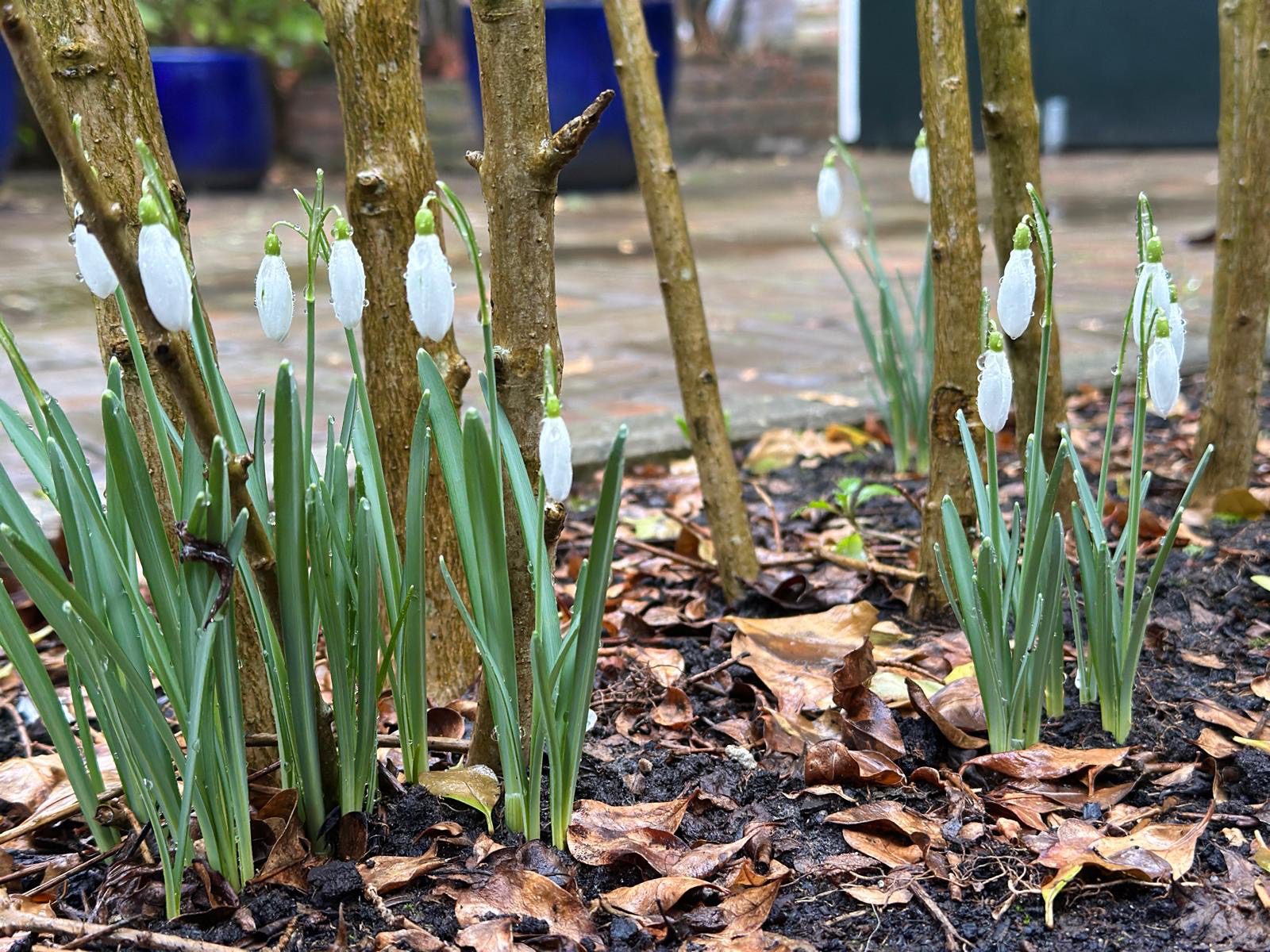 De sneeuwklokjes in de voortuin doen het goed.