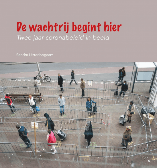 In de tassen onder andere een publicatie van de fotograaf Sandra Uittenboogaart. ‘De wachtrij begint hier – twee jaar coronabeleid in beeld’. De moeite waard.